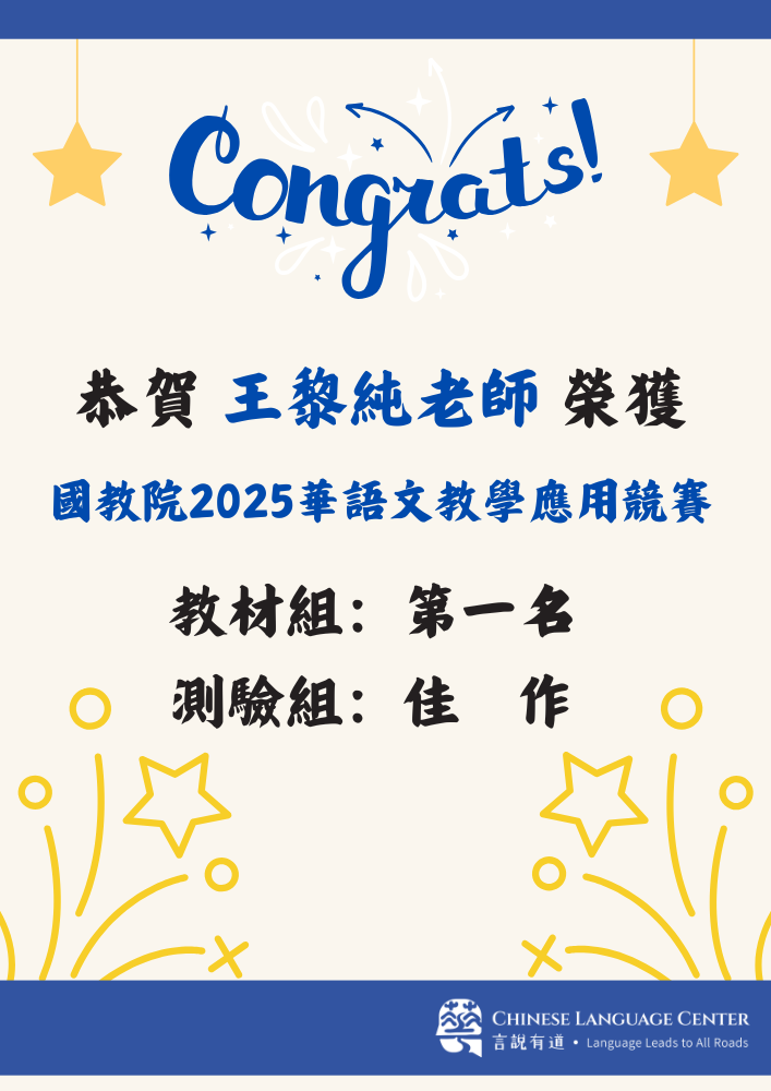 恭賀王黎純老師榮獲國家教育研究院「2025華語文教學應用競賽:語料庫×能力基準×AI」
